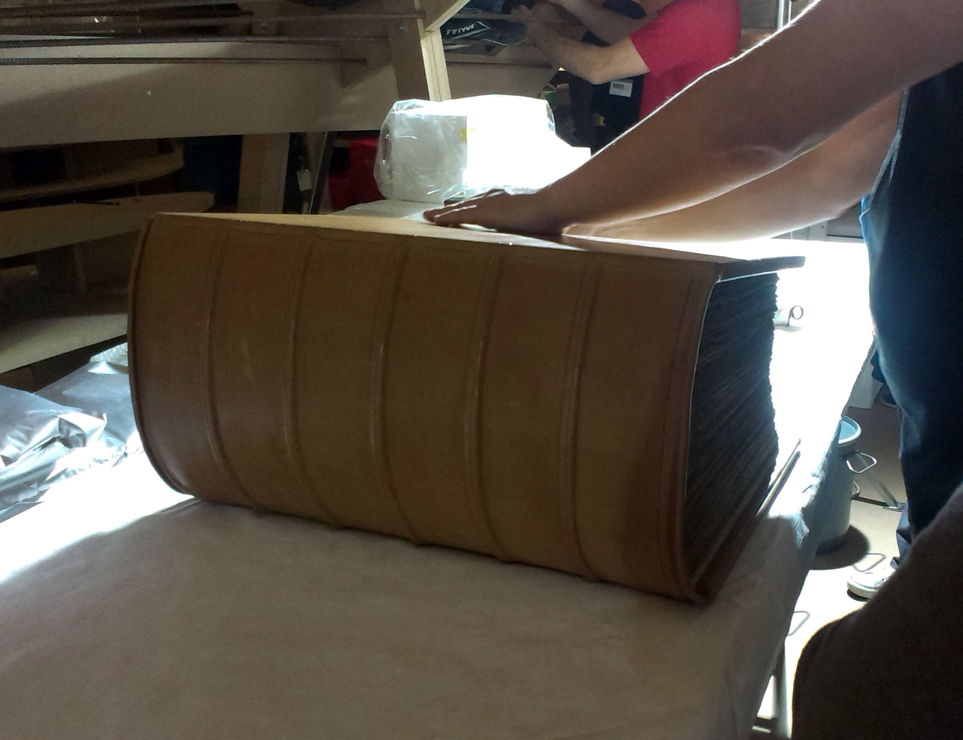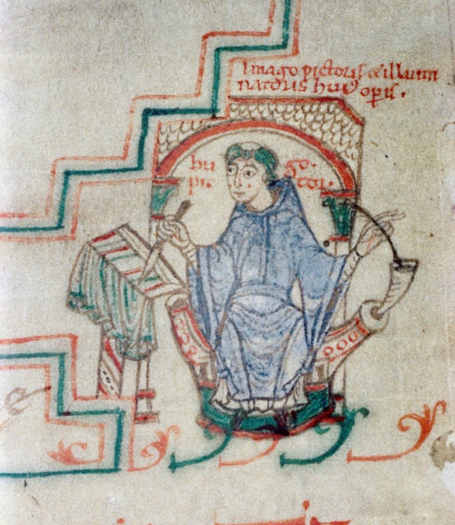 Hugo Pictor’s self-portrait, making a book in the 11th century. The enormous 8th century Codex Amiatinus is approximately the weight of a 12-year-old child, with 2,000 parchment pages made from 515 sheep and goat skins. It was created by a team of scribes working at the Monkwearmouth-Jarrow Abbey in northern England where Bede lived.